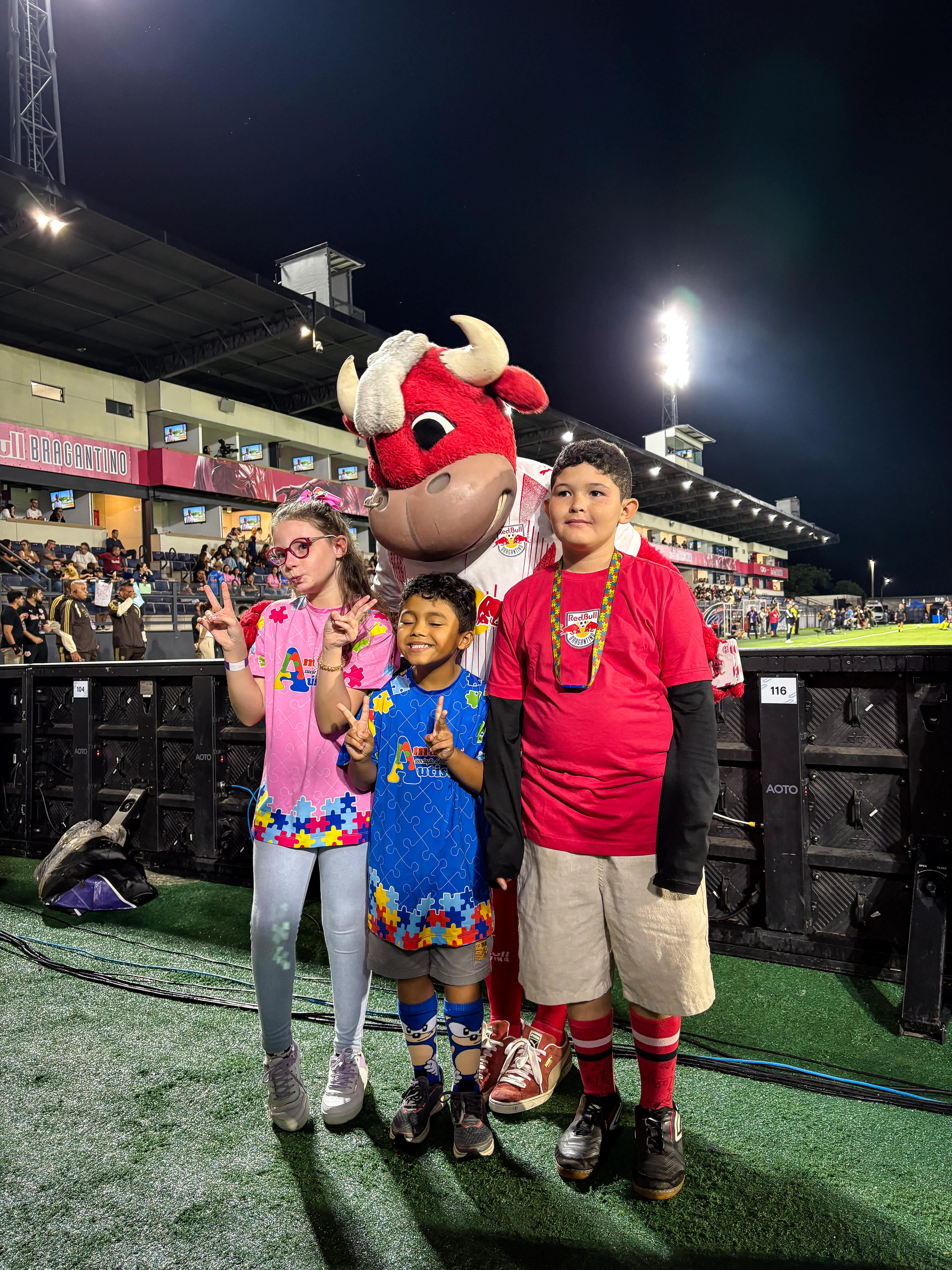 O Red Bull Bragantino promoveu, nesta quinta-feira (2), uma ação especial em alusão ao Dia Mundial de Conscientização do Autismo. Antes da bola rolar para o confronto diante do Flamengo, integrantes da torcida inclusiva Autistas Bragantinos e de projetos da cidade acompanharam o aquecimento dos atletas diretamente do gramado.